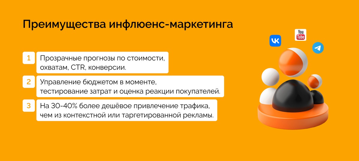 Как маркетинговое агентство мы оцениваем любой рекламный канал или инструмент в первую очередь с точки зрения окупаемости для нашего клиента. Отметим несколько преимуществ инфлюенс-маркетинга.